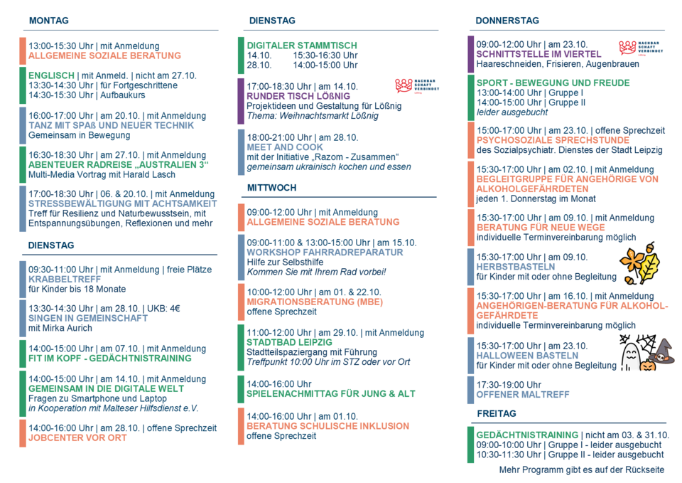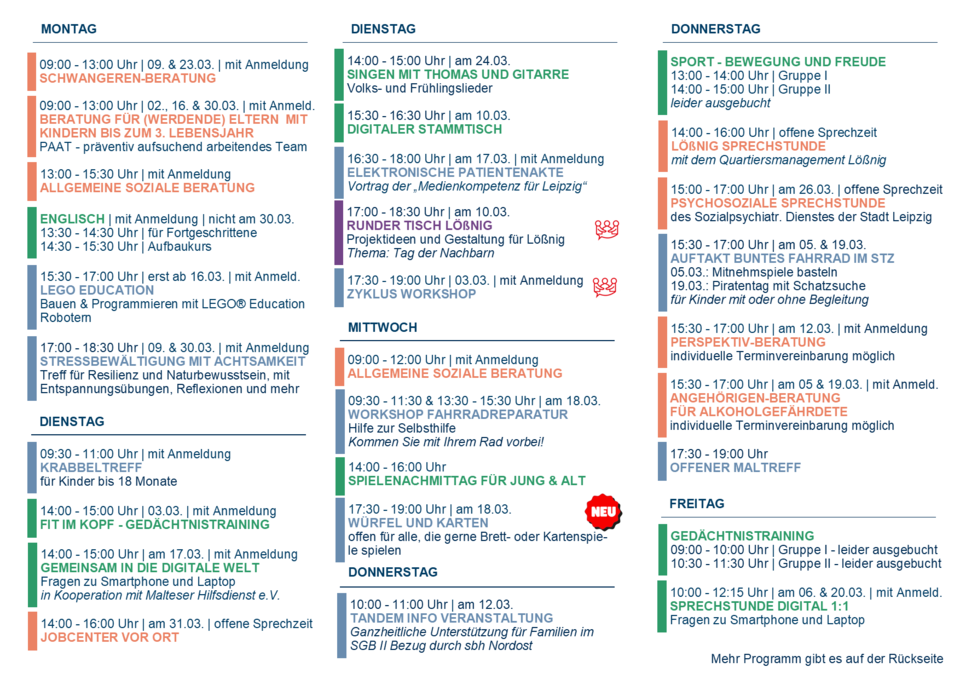 Reguläre Angebote im Stadtteilzentrum sind beispielsweise: