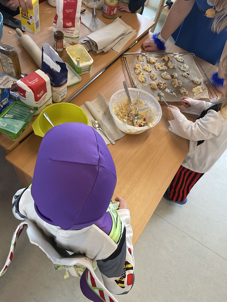 Anschließend ging’s weiter mit Basteln, Tanzen, lustigen Spielen und leckeren bunten Faschingskeksen aus unserer Kinderküche.