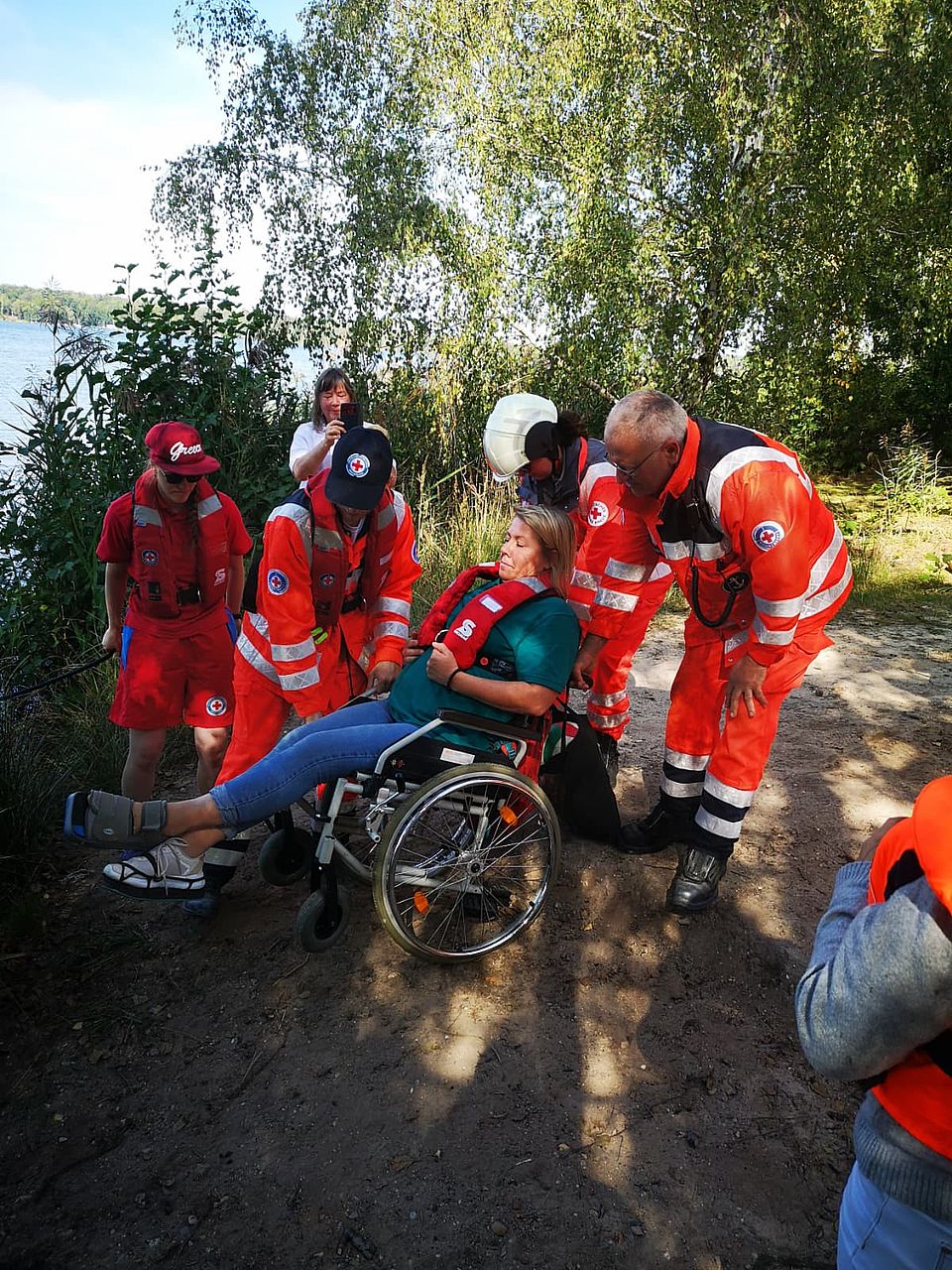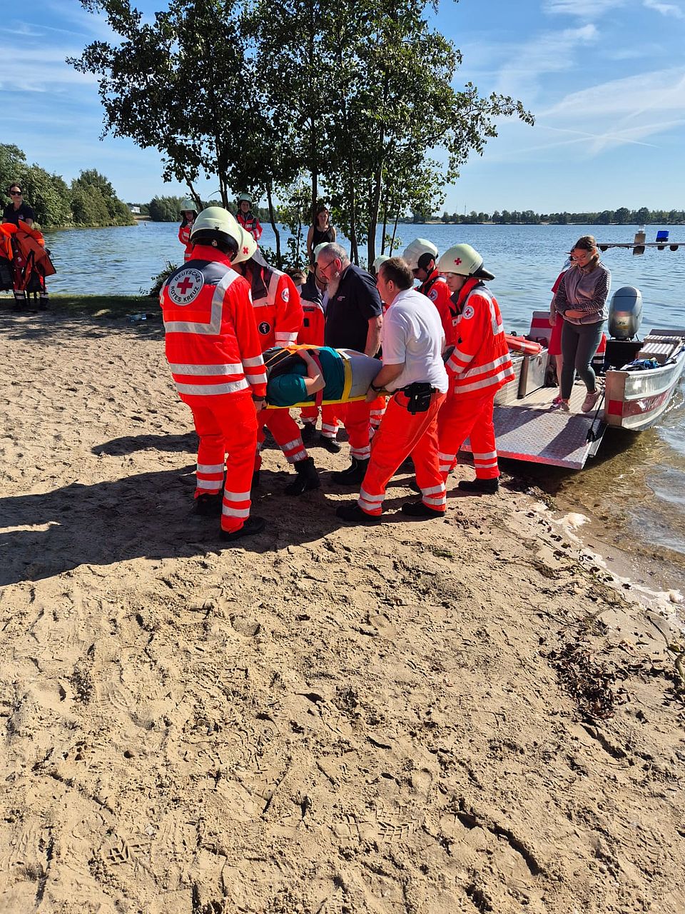 Zu Beginn wurden sechs verletzte Personen versorgt, die auf die andere Seite des Sees geflüchtet waren, um Hilfe zu holen. Anschließend brachen Einsatzkräfte mit Booten auf, um weitere vermisste und verletzte Personen zu lokalisieren und zu retten. Parallel dazu wurde ein Behandlungsplatz eingerichtet, an dem im weiteren Verlauf alle Verletzten medizinisch betreut und für den Abtransport vorbereitet wurden.