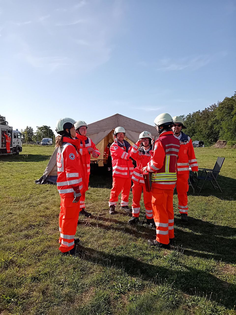 Nach erfolgreichem Abschluss der Übung konnten sich alle Beteiligten bei einer warmen Mahlzeit aus der Feldküche stärken. Besonderer Dank gilt den Helferinnen und Helfern aller beteiligten Einheiten, die trotz sommerlicher Temperaturen hochprofessionell gearbeitet haben. Ebenfalls danken wir dem Jugendrotkreuz sowie den Kindern der Feuerwehr Kemberg für ihre eindrucksvolle Darstellung der Verletzten, und dem Bergwitzsee Resort für die kostenfreie Unterstützung vor Ort. Dieses Zusammenspiel zeigt erneut, wie wertvoll das Engagement im Ehrenamt ist.