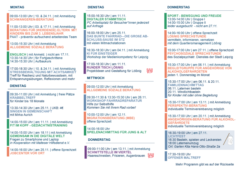Reguläre Angebote im Stadtteilzentrum sind beispielsweise: