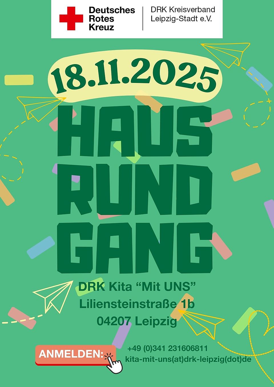 kommt vorbei und entdeckt unsere Kindertagesstätte “Mit UNS” in der Lilienstraße 1b, 04207 Leipzig, bei einem persönlichen Hausrundgang am 18. November 2025!
