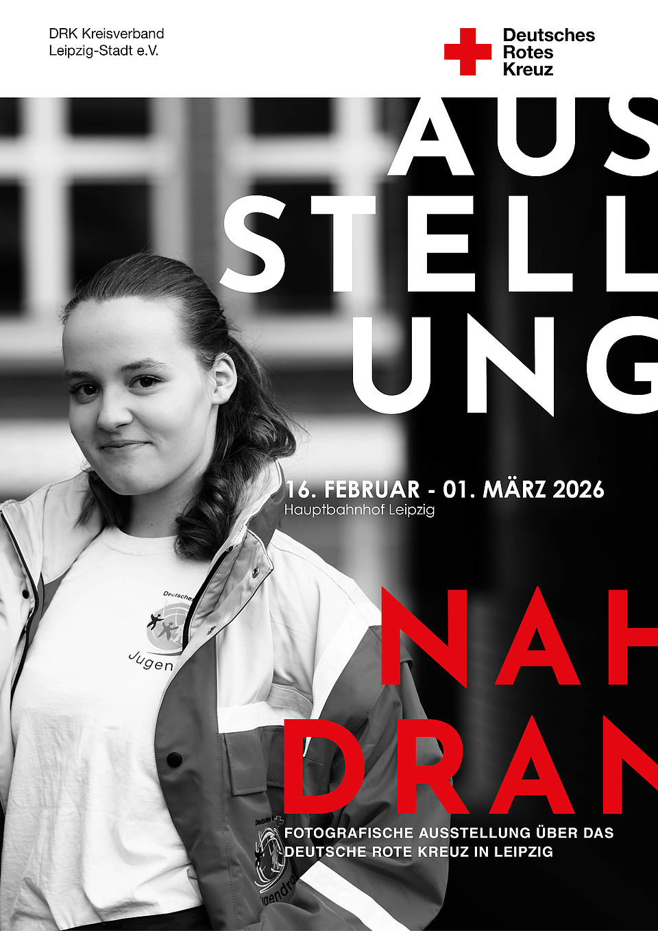 Vom 16. Februar bis 1. März 2026 zeigt der DRK-Kreisverband Leipzig-Stadt e.V. im Leipziger Hauptbahnhof die Ausstellung „Nah dran“. Rund 50 eindrucksvolle Fotografien geben Einblicke in das vielfältige Wirken des Deutschen Roten Kreuzes in Leipzig – im Haupt- und Ehrenamt, im Einsatz und im Alltag.